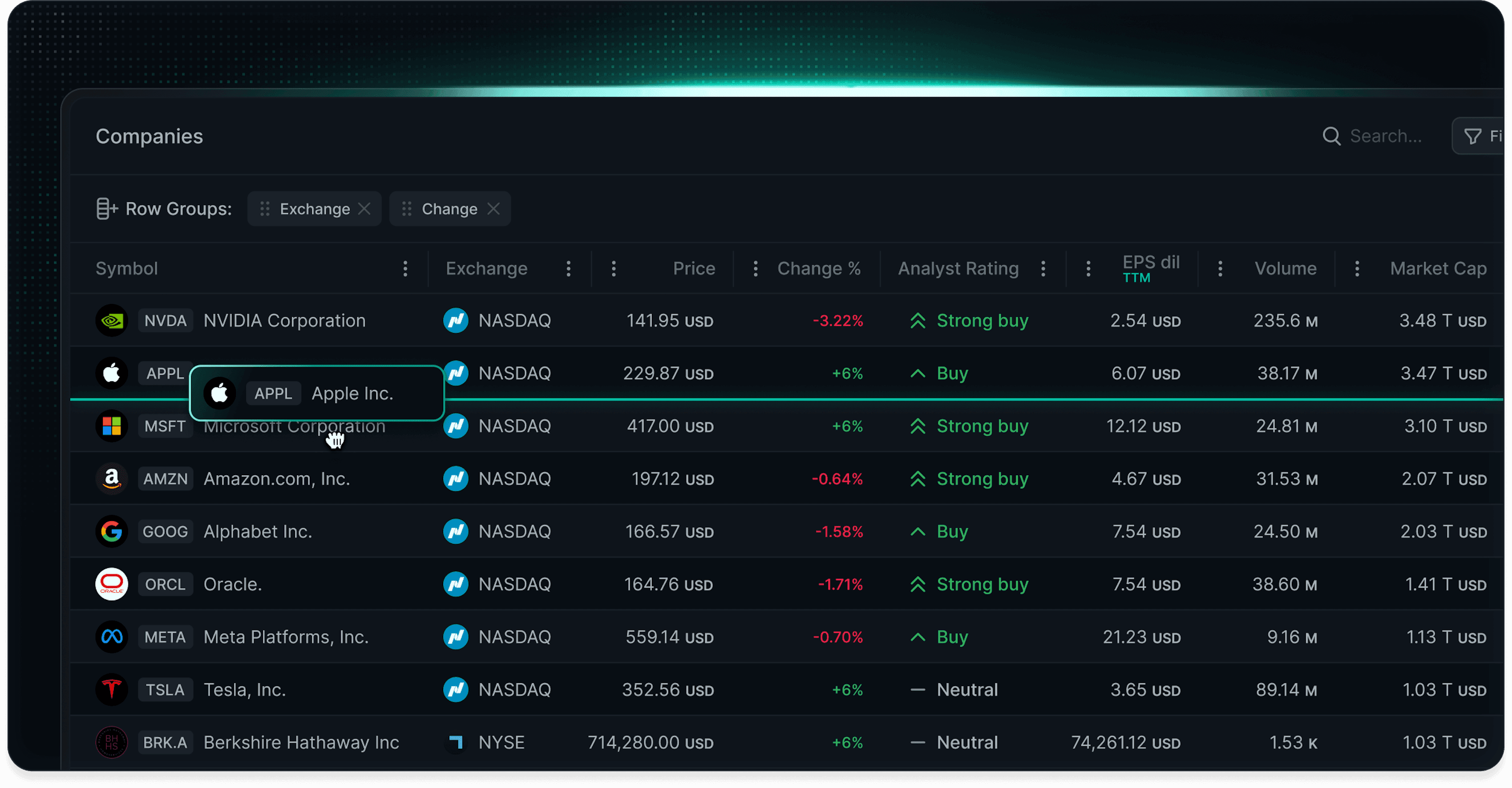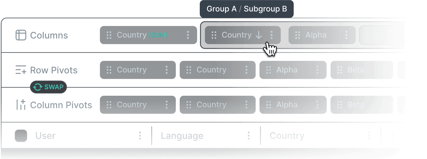 Group rows to form aggregated views. LyteNyte Grid intelligently orchestrates the row group tree, applying only minimal updates to create the correct view.